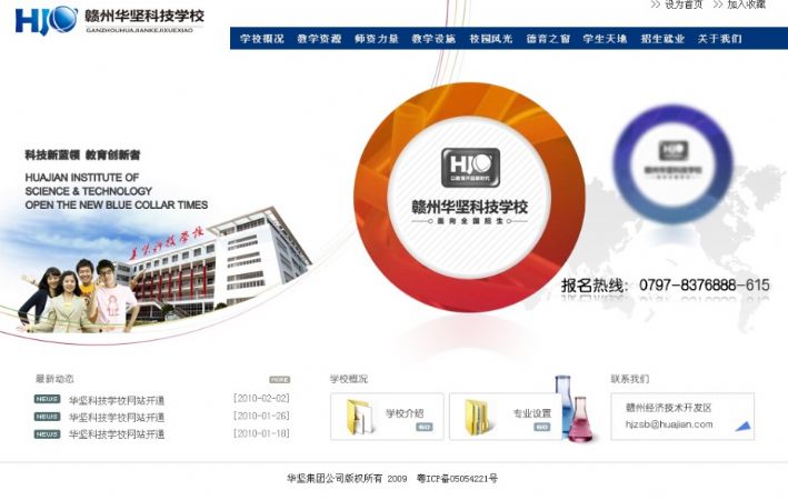 網站從6月18日上線至今,差不多運行了三個月,在這期間,贛州華堅科技學校網站承擔了學校招生宣傳的重要角色。下面是我們制作的一些效果: